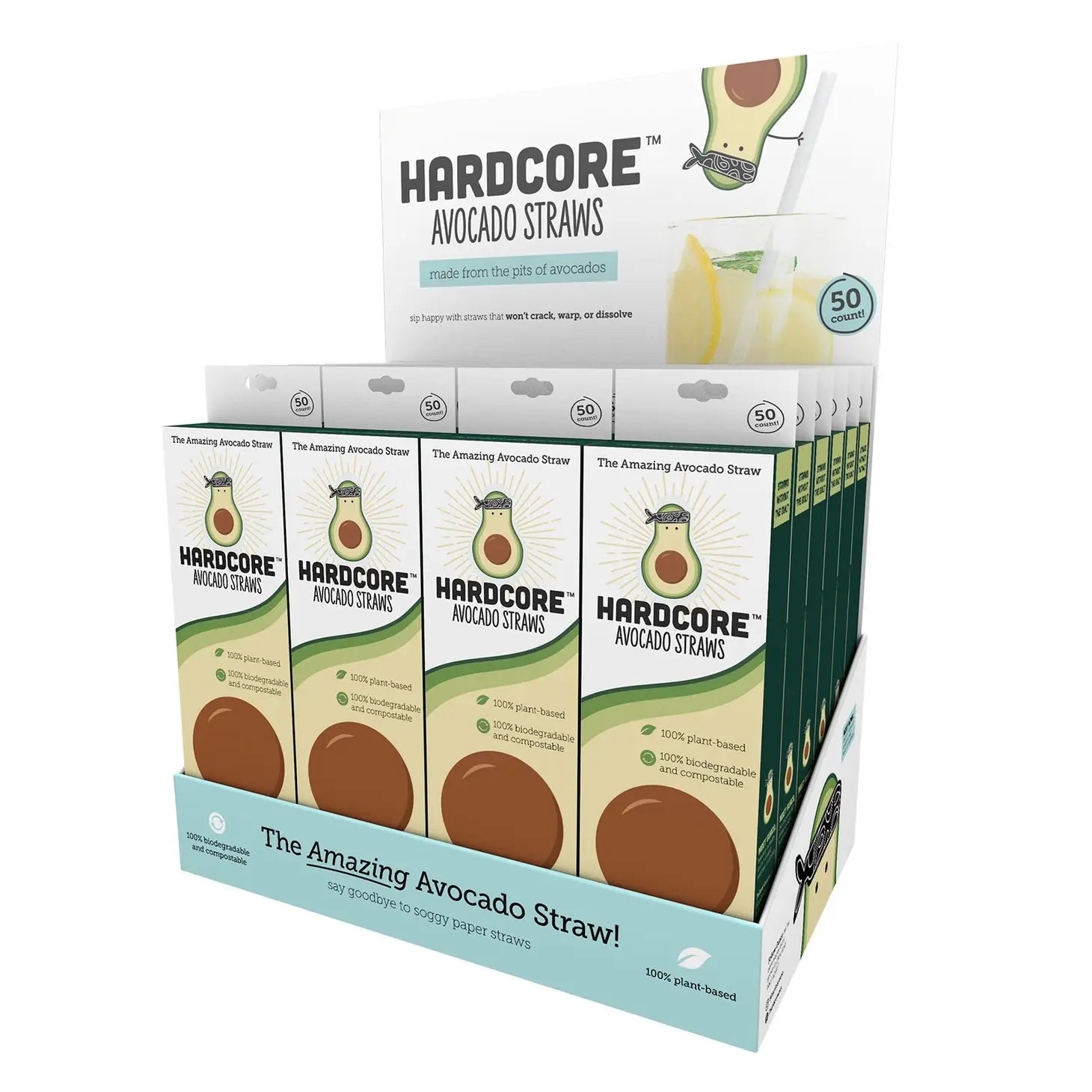 Hardcore Straws are the only 100% biodegradable & compostable straws. They are long lasting, won’t bend, crack, dissolve or get soggy, while other straws…get soggy & gummy, dissolve, bend & crack, end up in the ocean. They also have a really, really low eco-footprint.