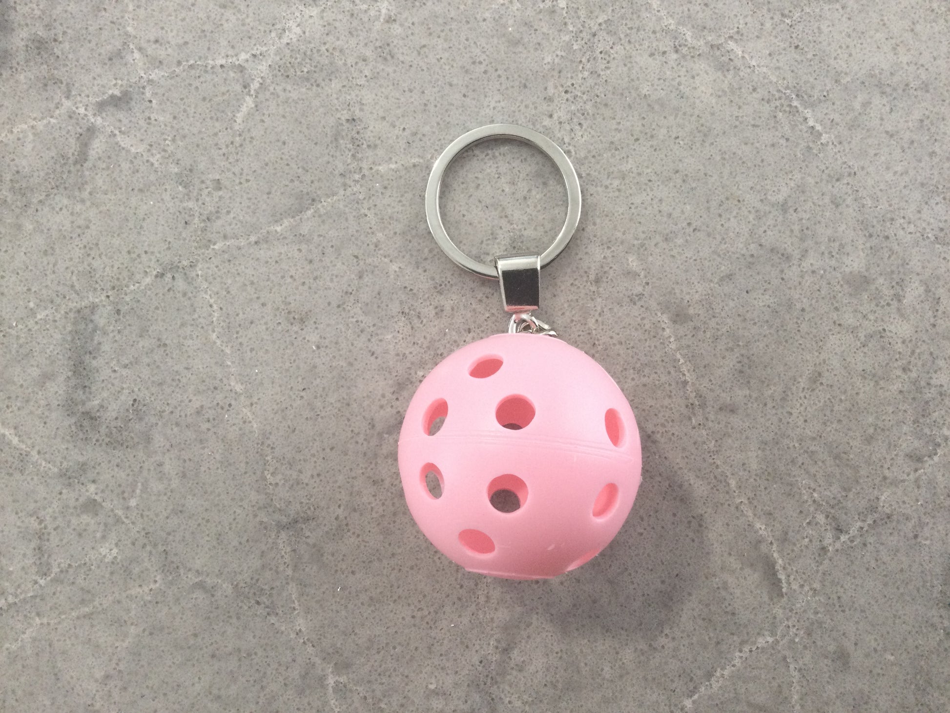 This keychain allows you to quickly find and identify your keys thanks to its cheery color. Just like a real pickleball, the bright design catches the eye and stands out against the background of any purse or bag. It can also be used as a fun zipper pull on a jacket, duffel bag, or backpack when you want to make your accessories pop!